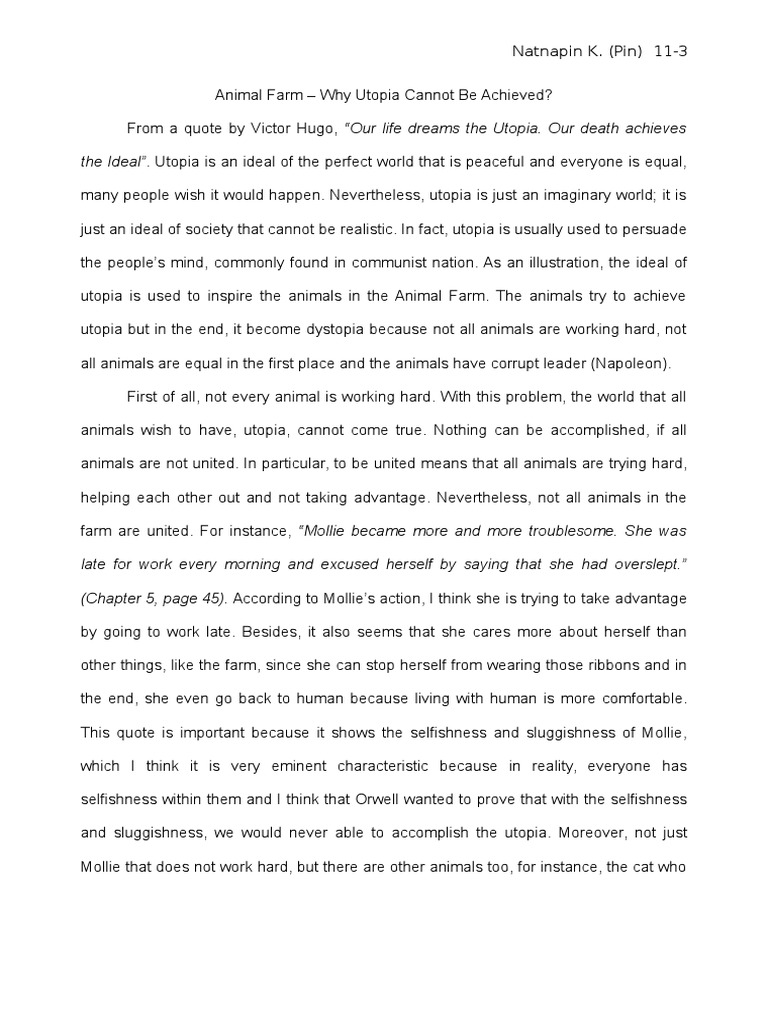Animal Farm Essay Utopia Dystopia