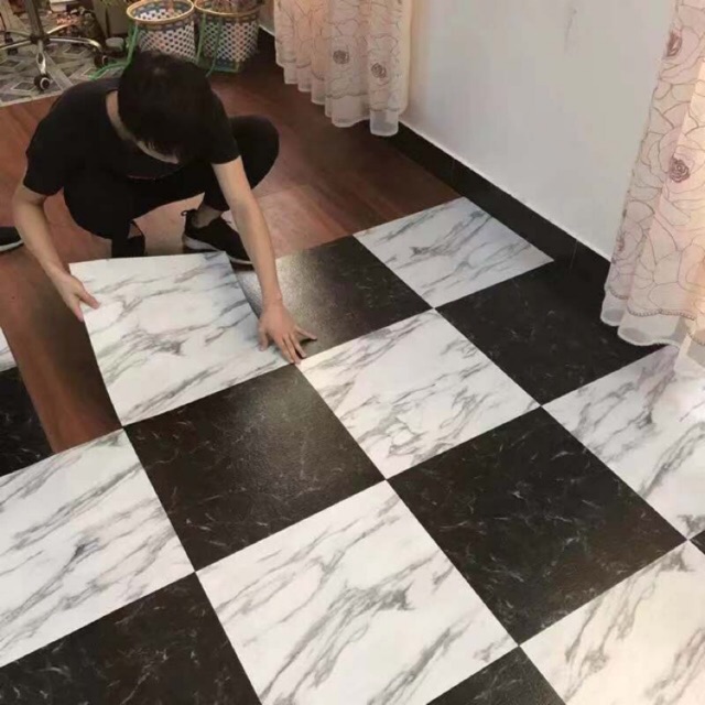 Floor Sticker Sazi 30cm 30cm Diy Self Adhesive Wall Tile Room Decor Home Decor Black White Shopee Philippines